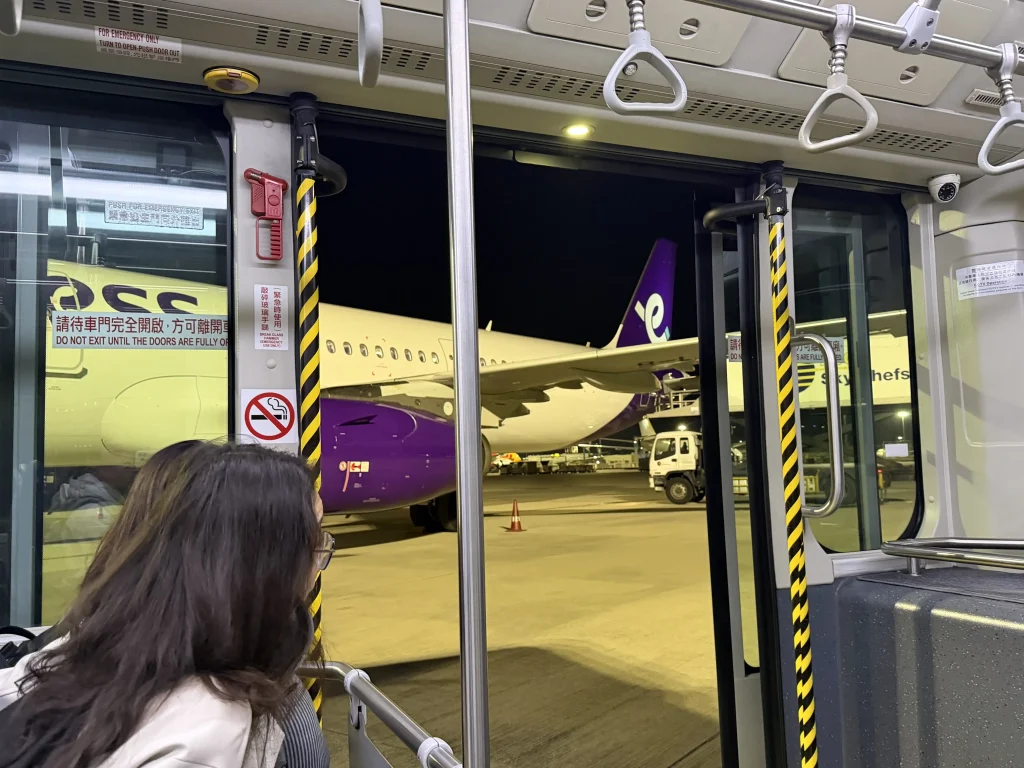 在摆渡车上,我和友人F讨论了一下今天的安排,我们打算先坐机场快线到市中心,然后从南到北逛维港、K11、尖沙咀和油麻地,下午再去迪士尼。