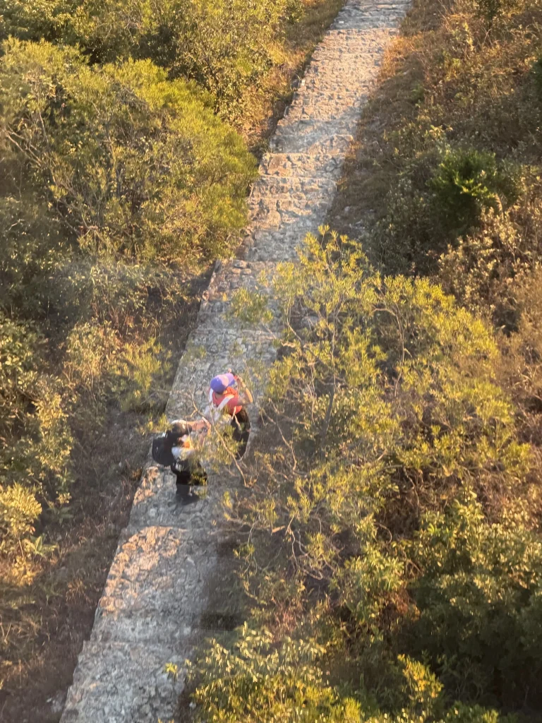 离开机场岛后,城市景观逐渐缩小,后半程将进入大屿山安静的森林深处。我们的脚下是昂坪栈道,是除了缆车之外的第二种上山途径。