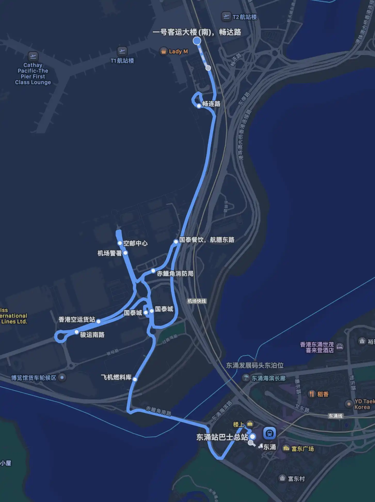在东涌总站搭乘S64路巴士去机场,香港的所有巴士好像都是双层的