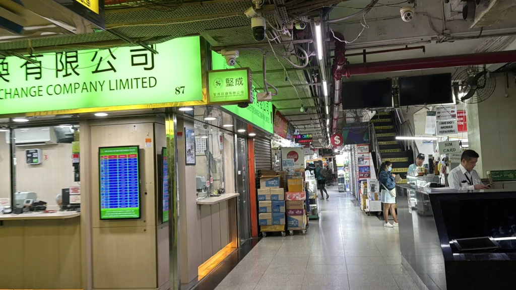 重庆大厦,“世界中心的平民窟”,位于尖沙咀弥敦道的黄金地段。一楼进门有大量的“找换店”和二手手机店,弥漫着百货商店那种缺乏空气流通的气味,给我的第一印象就是一个国际化的华强北。二楼以上应该是住宅。友人F对这种环境感到不适,他说感觉下一秒就有人会从背后捅他一刀。