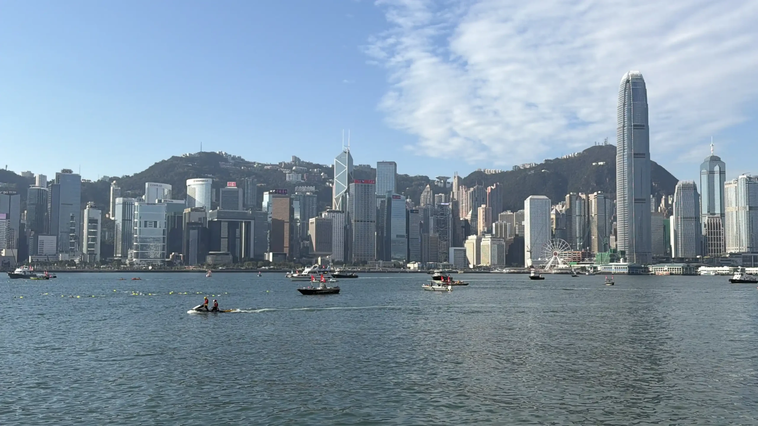 维港正在举办游泳比赛,岸上有好多好多的人。维港泳,路线是由金紫荆广场出发,游至位于尖沙咀的星光大道,全程一公里。一公里 35 米泳道大约是 14 个来回,我基本上要游四五十分钟,这里最慢的选手也能把我甩的远远的。