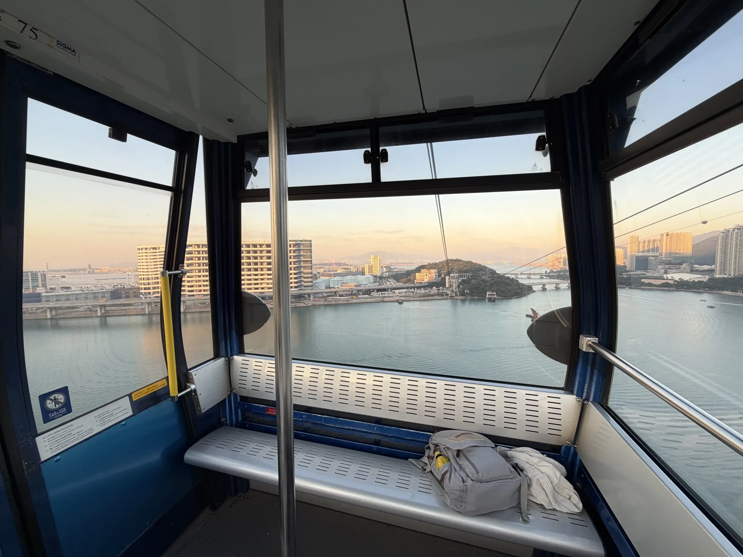 昂坪360全长近六公里,有多个中途站和转向站,单程半个小时,可以依次看到南中国海、香港机场、港珠澳大桥和天坛大佛。